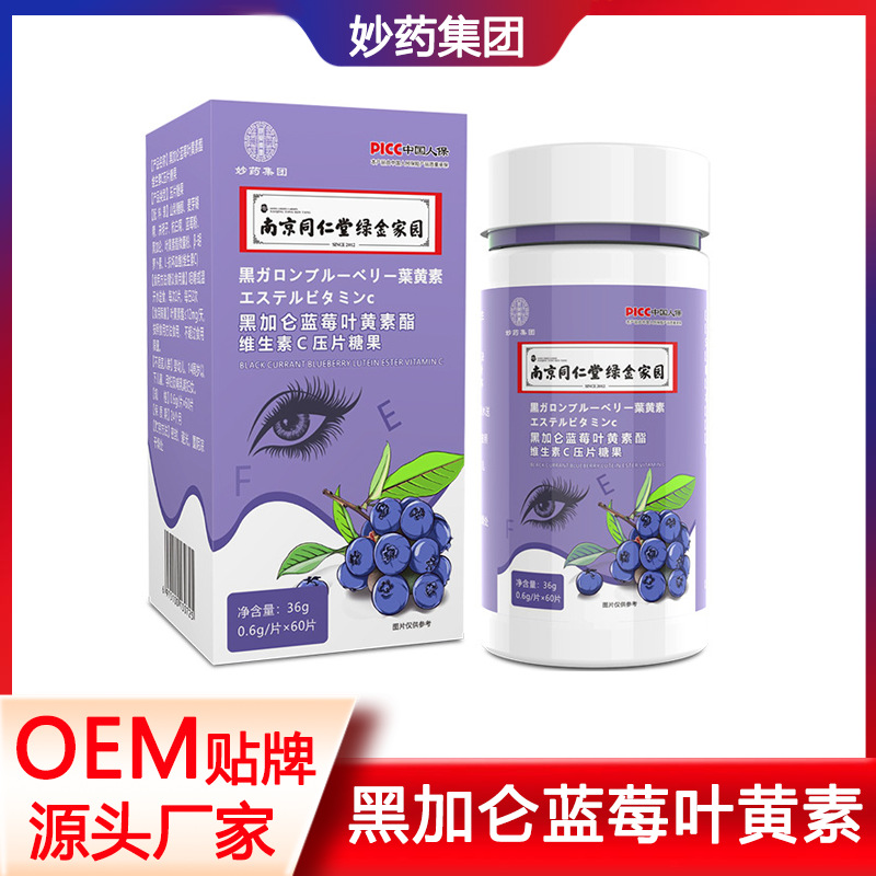 兒童DHA咀嚼黑加侖藍莓葉黃素酯維生素C壓片糖果OEM代加工
