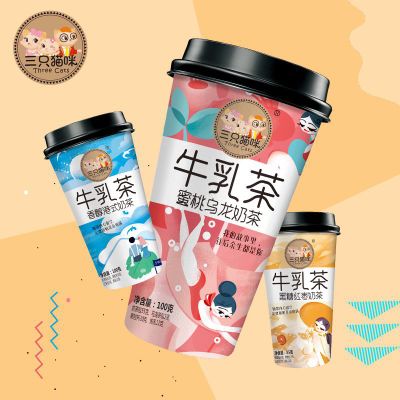 三只貓咪高杯牛乳茶 OEM/ODM定制代加工