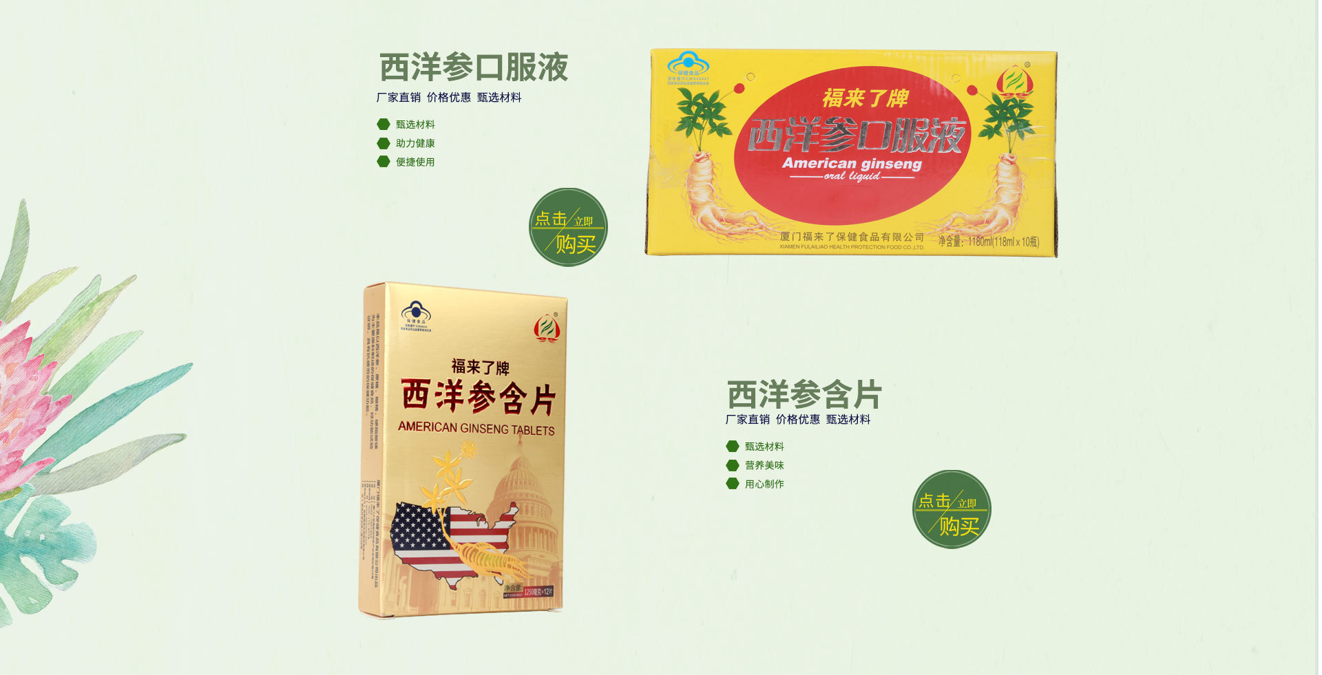 安徽福來(lái)生物醫(yī)藥有限公司是一家專(zhuān)業(yè)從事中藥飲片、醫(yī)療器械、化妝品、保健食品、營(yíng)養(yǎng)食品的研發(fā)和生產(chǎn)的綜合性企業(yè)。 公司主營(yíng)產(chǎn)品:西洋參深加工,清咽含片,蛋白質(zhì)粉,蟲(chóng)草口服液,礦物質(zhì)營(yíng)養(yǎng)補(bǔ)充劑等二十余國(guó)家食品藥品監(jiān)督管理局批件。 企業(yè)始終秉承質(zhì)量就是企業(yè)的生命,安全,健康是我們追求的產(chǎn)品理念