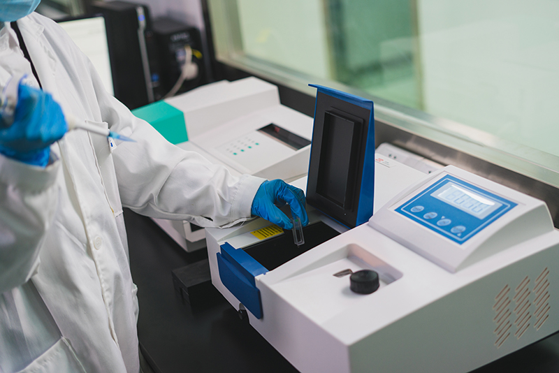 紫外可見(jiàn)分光光度計(jì)是基于紫外可見(jiàn)分光光度法原理,利用物質(zhì)分子對(duì)紫外可見(jiàn)光譜區(qū)的輻射吸收來(lái)進(jìn)行分析的一種分析儀器.主要作用是鑒定物質(zhì),可以測(cè)定核酸和蛋白的濃度,也可以測(cè)定細(xì)菌細(xì)胞密度、待測(cè)物質(zhì)是標(biāo)準(zhǔn)物及標(biāo)準(zhǔn)圖譜對(duì)照進(jìn)行分析、純度檢驗(yàn)、推測(cè)化合物的分子結(jié)構(gòu)及構(gòu)成、判定絡(luò)合物的組成及穩(wěn)定常數(shù)的測(cè)定.