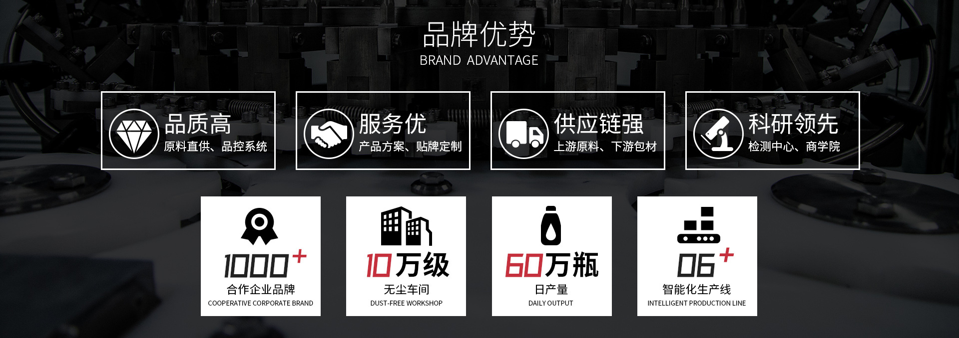 福建省善研高健食品有限責(zé)任公司(以下稱善研高?。菑氖卵喔C和燕窩衍生產(chǎn)品代加工的國家高新技術(shù)企業(yè)。以“品質(zhì)高、服務(wù)優(yōu)、科研領(lǐng)先、供應(yīng)鏈強(qiáng)”為核心價值理念,致力于成為燕窩產(chǎn)業(yè)價值領(lǐng)創(chuàng)者。 自創(chuàng)立以來,善研高健從原料、研發(fā)、生產(chǎn)、服務(wù)等多層面發(fā)力,逐步打造出燕窩和燕窩衍生產(chǎn)品代加工的全產(chǎn)業(yè)鏈優(yōu)勢,致力于為合作伙伴提供更具價值的產(chǎn)品及服務(wù)。 在馬來西亞和印尼,善研高健建立了標(biāo)準(zhǔn)的原料直供和優(yōu)選系統(tǒng),從產(chǎn)業(yè)鏈前端保障了燕窩原料的品質(zhì)安全、價格穩(wěn)定和產(chǎn)量充足;在漳州,善研高健擁有面積2萬平米、固定員工超500人、日產(chǎn)能達(dá)50萬瓶的現(xiàn)代化生產(chǎn)基地;按照GMP標(biāo)準(zhǔn)建立的現(xiàn)代化生產(chǎn)車間,擁有德國、意大利引進(jìn)的自動化生產(chǎn)線和生產(chǎn)設(shè)備;同時打通下游包材、輔材供應(yīng)鏈,確保滿足合作伙伴的多樣化定制需求,讓代工更省心。