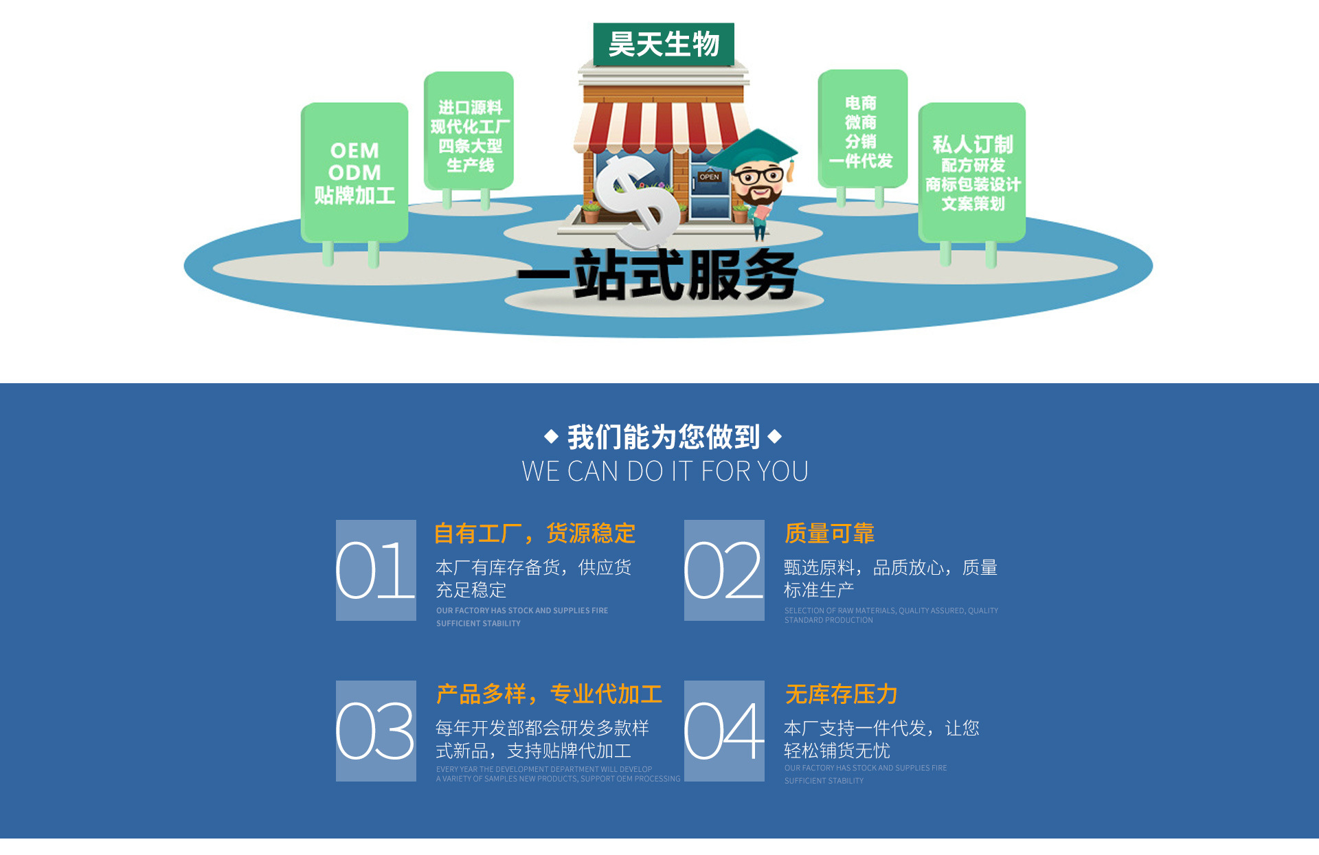 安徽昊天生物科技有限公司,坐落在中國(guó)醫(yī)藥集散地---安徽太和縣工業(yè)園,是一家集生產(chǎn),研發(fā),銷(xiāo)售,技術(shù)支持與一身的高科技企業(yè)。公司擁有員工130余人,擁有符合國(guó)家要求的各類(lèi)生產(chǎn)線(xiàn)4條,下設(shè)總經(jīng)理辦公室,銷(xiāo)售部,研發(fā)部,生產(chǎn)部,質(zhì)量部,財(cái)務(wù)部等職能部門(mén)。生產(chǎn)基地還有良好的基礎(chǔ),人員結(jié)構(gòu)合理,各類(lèi)專(zhuān)業(yè)技術(shù)人員占50%以上,有執(zhí)業(yè)藥師8人,各主要崗位均有把關(guān),公司積累了十幾年的藥品生產(chǎn)管理經(jīng)驗(yàn),具備完善的生產(chǎn)質(zhì)量管理體系,嚴(yán)格按照GMP規(guī)范組織生產(chǎn),其生產(chǎn)廠房,設(shè)備,檢測(cè)儀器及專(zhuān)業(yè)人員水準(zhǔn)均能達(dá)到高要求的生產(chǎn)需求。發(fā)展中的安徽昊天生物科技有限公司以現(xiàn)代化大型生物制藥企業(yè)為目標(biāo),以提高抗體藥物研發(fā)能力與生產(chǎn)水平,提高人民健康為宗旨,通過(guò)國(guó)際化,產(chǎn)業(yè)化,標(biāo)準(zhǔn)化,規(guī)?;倪\(yùn)營(yíng)模式,致力于將生物科技發(fā)展的最新成就融入到21世紀(jì)的健康事業(yè),不斷為社會(huì)奉獻(xiàn)最先進(jìn),最優(yōu)異的藥物,與您共同見(jiàn)證中國(guó)生命科學(xué)的崛起