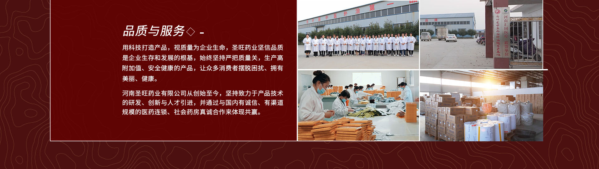 河南圣旺藥業(yè)有限公司企業(yè)簡(jiǎn)介 河南圣旺藥業(yè)有限公司,地處著名歷史文化名城河南南陽(yáng),是集制藥技術(shù)咨詢、醫(yī)療器械、化妝品、消毒產(chǎn)品、保健用品及艾草制品的研發(fā)、生產(chǎn)、銷售、服務(wù)為一體的現(xiàn)代化綜合型企業(yè)。擁有自主商標(biāo)三大類三十多個(gè),開發(fā)出了以仲漢方、百灸通、仲景艾灸寶等為代表品牌的上百個(gè)單品,暢銷全國(guó)三十個(gè)省市自治區(qū)。多年來(lái)圣旺藥業(yè)堅(jiān)持以專業(yè)的人才、一流的設(shè)備為基礎(chǔ),以核心科技為發(fā)展之本,竭力為各級(jí)代理商和廣大消費(fèi)者提供優(yōu)質(zhì)產(chǎn)品和完善服務(wù)。在從事特殊用途化妝品、艾草制品、醫(yī)療器械的研發(fā)與銷售的同時(shí),重點(diǎn)致力于產(chǎn)品的創(chuàng)新和開發(fā)力度,培育具有高科技、高附加值、安全健康的產(chǎn)品,讓眾多消費(fèi)者在體驗(yàn)產(chǎn)品價(jià)值的同時(shí)擺脫困擾、擁有美麗、健康。