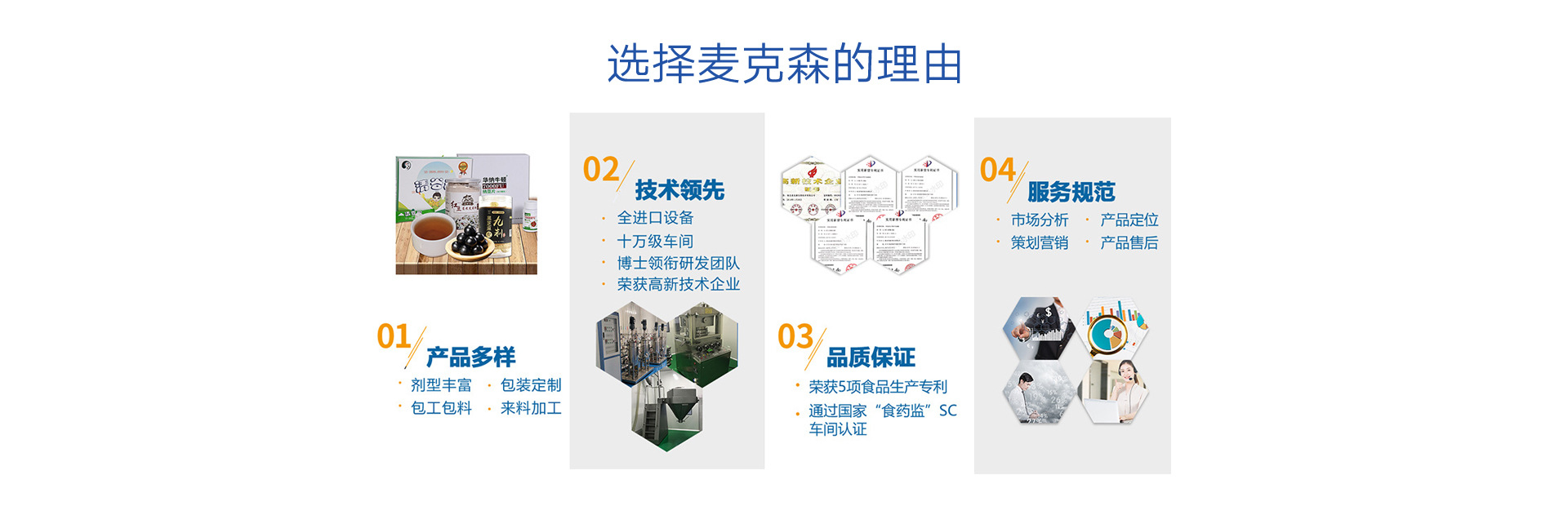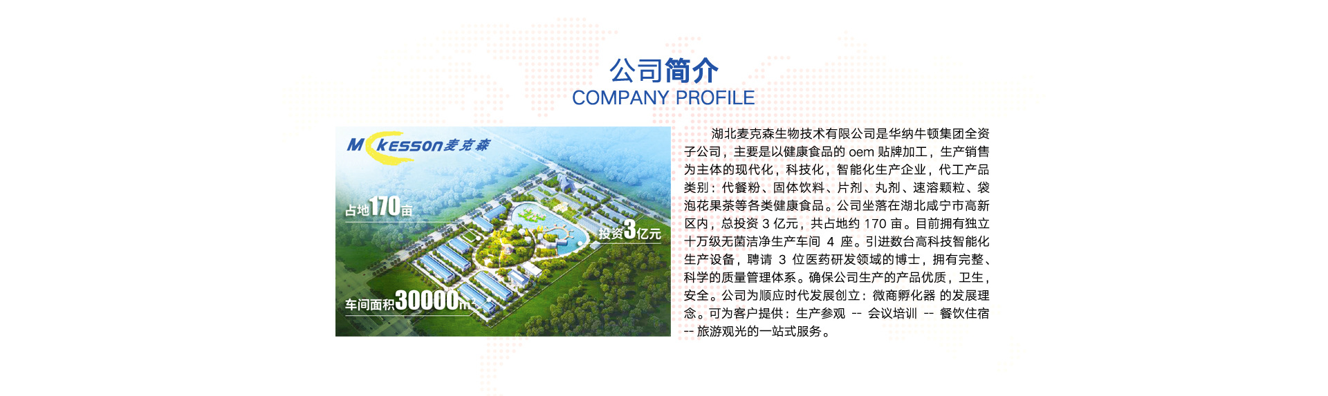湖北麥克森生物技術(shù)有限公司是華納牛頓集團(tuán)全資子公司,主要是以健康食品的oem貼牌加工,生產(chǎn)銷售為主體的現(xiàn)代化,科技化,智能化生產(chǎn)企業(yè),代工產(chǎn)品涉及保健食品、代餐粉、固體飲料、壓片糖果、蜂蜜丸,速溶顆粒,袋泡花果茶、條袋裝膏滋等領(lǐng)域。公司坐落在風(fēng)景秀麗的湖北咸寧市高新區(qū)內(nèi),總投資3億元,工廠占地面積167畝。目前擁有獨(dú)立十萬(wàn)級(jí)無(wú)菌潔凈生產(chǎn)車間6座。全部按保健食品GMP車間標(biāo)準(zhǔn)要求建設(shè)。配套引進(jìn)如:六聯(lián)分裝機(jī)、顆粒沸騰床等數(shù)臺(tái)高科技一體化生產(chǎn)設(shè)備,高薪聘請(qǐng)3位醫(yī)藥研發(fā)領(lǐng)域的博士主導(dǎo)產(chǎn)品配比和研發(fā)。擁有完整、科學(xué)的生產(chǎn)質(zhì)量管理體系。確保公司生產(chǎn)的產(chǎn)品優(yōu)質(zhì),衛(wèi)生,安全。公司為順應(yīng)時(shí)代發(fā)展創(chuàng)立:體驗(yàn)式工廠的發(fā)展理念。致力于為客戶提供:生產(chǎn)參觀--會(huì)議培訓(xùn)--餐飲住宿--旅游觀光的一站式貼牌加工配套服務(wù)體系。湖北麥克森生物技術(shù)有限公司是您生產(chǎn)健康食品的理想選擇。我們始終堅(jiān)持用優(yōu)質(zhì)的產(chǎn)品和優(yōu)秀的服務(wù)