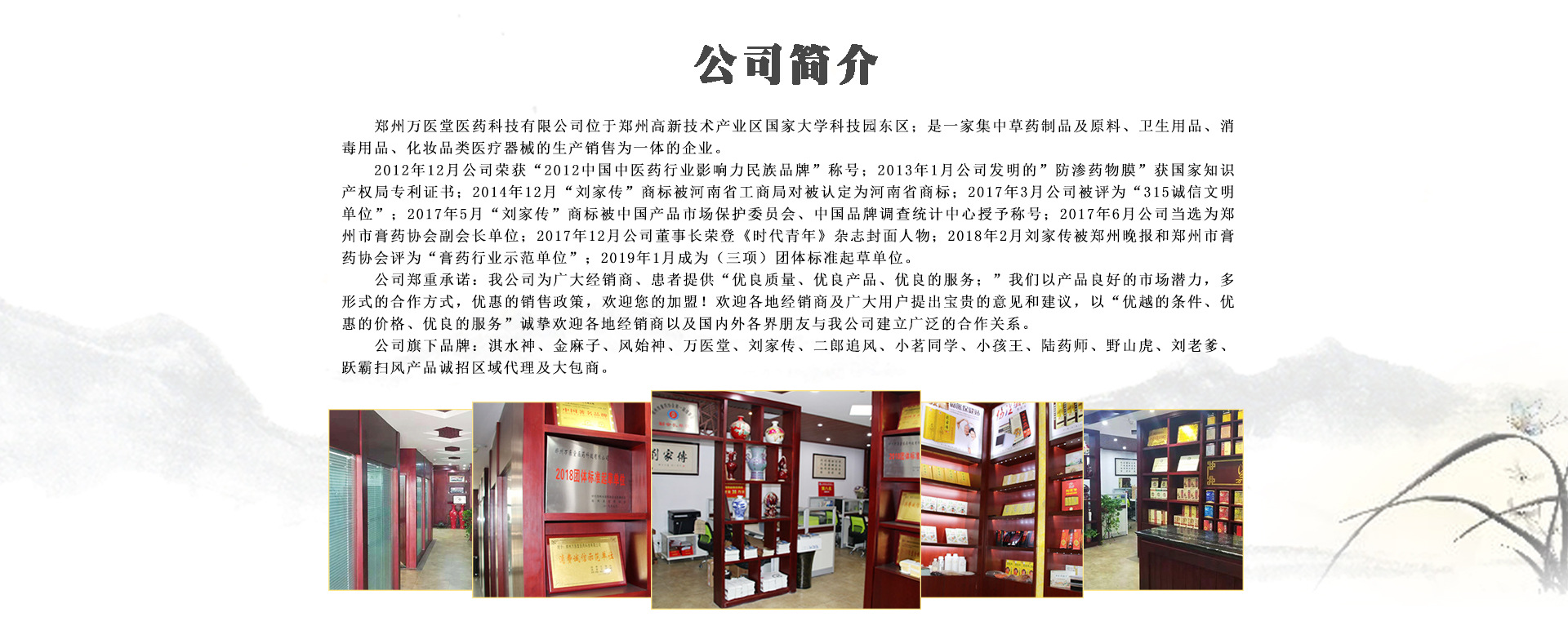 鄭州萬醫(yī)堂醫(yī)藥科技有限公司是一家集醫(yī)藥產(chǎn)品、消毒用品、化妝品、醫(yī)療器械的研發(fā)、生產(chǎn)、銷售為一體,以技術(shù)服務(wù)、技術(shù)咨詢?yōu)楫a(chǎn)業(yè)核心,以掌控知識產(chǎn)權(quán)入手、以醫(yī)藥科研為主的企業(yè),主打品牌“劉家傳”骨病系列外用產(chǎn)品,以療效顯著、品質(zhì)穩(wěn)定深得消費(fèi)者好評。 在2012年12月份,由中國醫(yī)藥衛(wèi)生行業(yè)協(xié)會聯(lián)合中國民族醫(yī)藥開發(fā)委員會、中國醫(yī)藥企業(yè)協(xié)會等單位12月17日在京舉辦“2012年度全國醫(yī)藥衛(wèi)生行業(yè)創(chuàng)新峰會/2012中國民族醫(yī)藥創(chuàng)新發(fā)展年會”上,被評為“2012中國民族醫(yī)藥最具影響力自主創(chuàng)新品牌、2012中國中醫(yī)藥行業(yè)最具影響力民族品牌”,這是公司發(fā)展過程中,得到了行業(yè)協(xié)會的認(rèn)可,公司的公信力和品牌力得到了提升,我們相信,在未來的競爭過程中,一定會立于不敗之地。