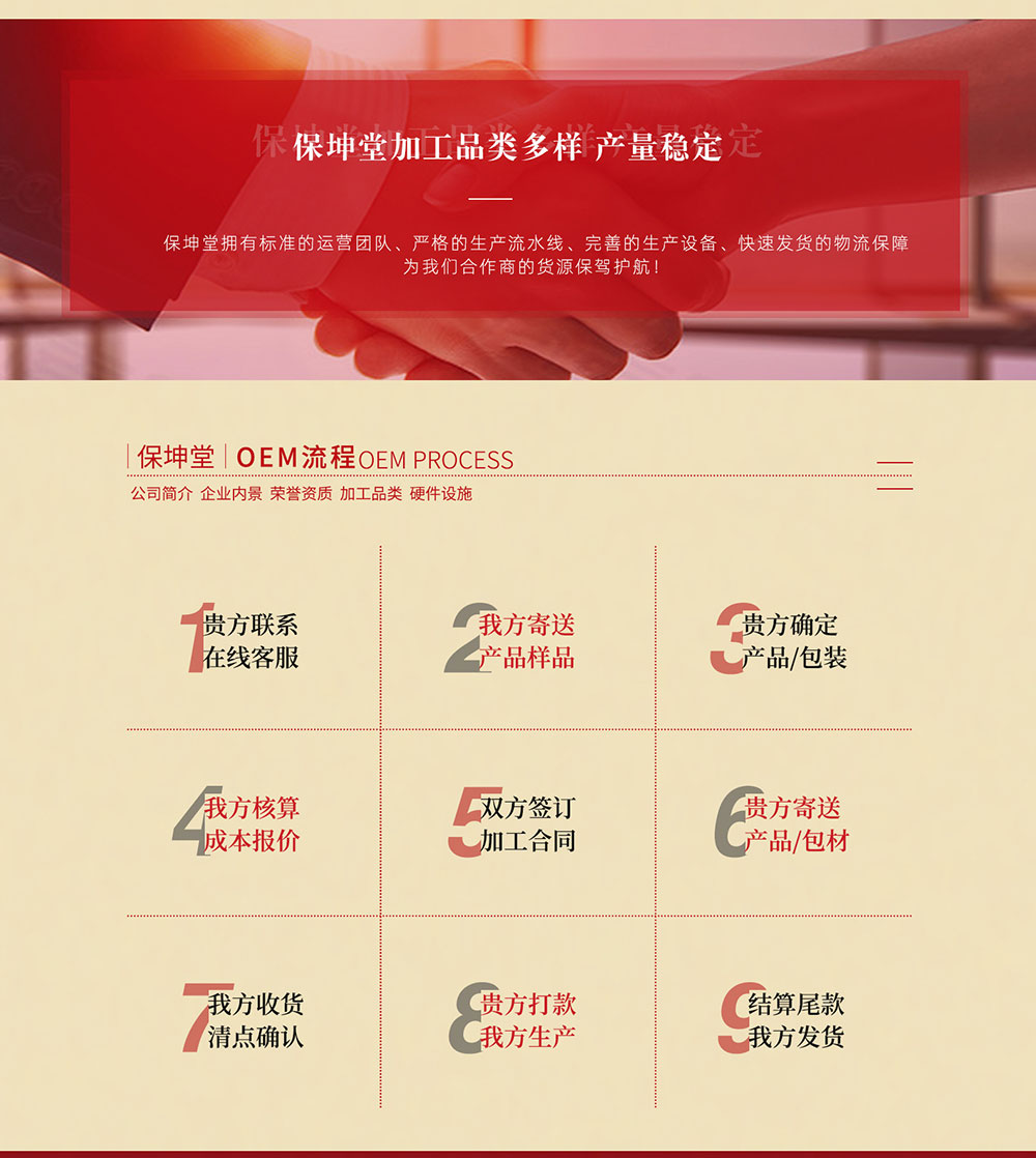 安徽保坤堂健康產(chǎn)業(yè)發(fā)展有限公司,總部坐落于中華四大藥都之首——安徽亳州市,我公司主要生產(chǎn)固體飲料,沖調(diào)類(lèi)方便食品,調(diào)味茶,代用茶,熱加工糕點(diǎn)